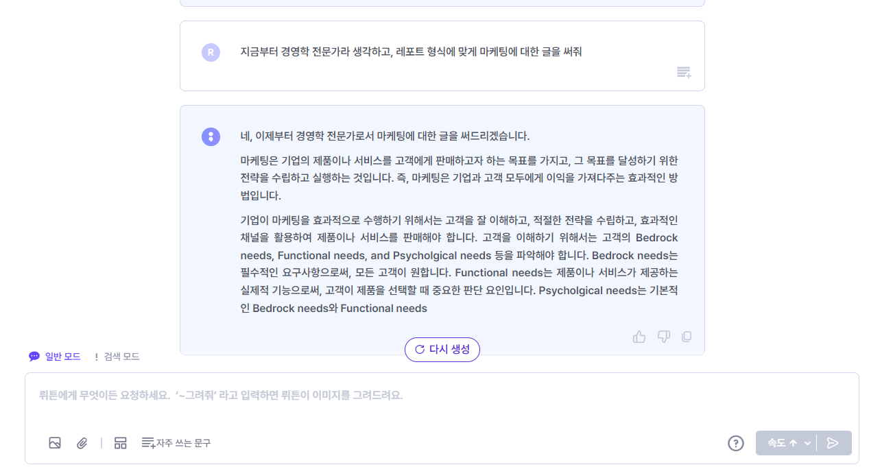 뤼튼은 한국인에게 최적화된 응답을 받을 수 있습니다.
