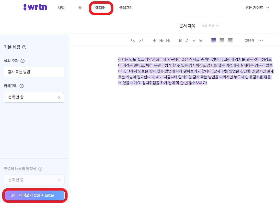 에디터는 장문의 글을 작성할 때 유용합니다.